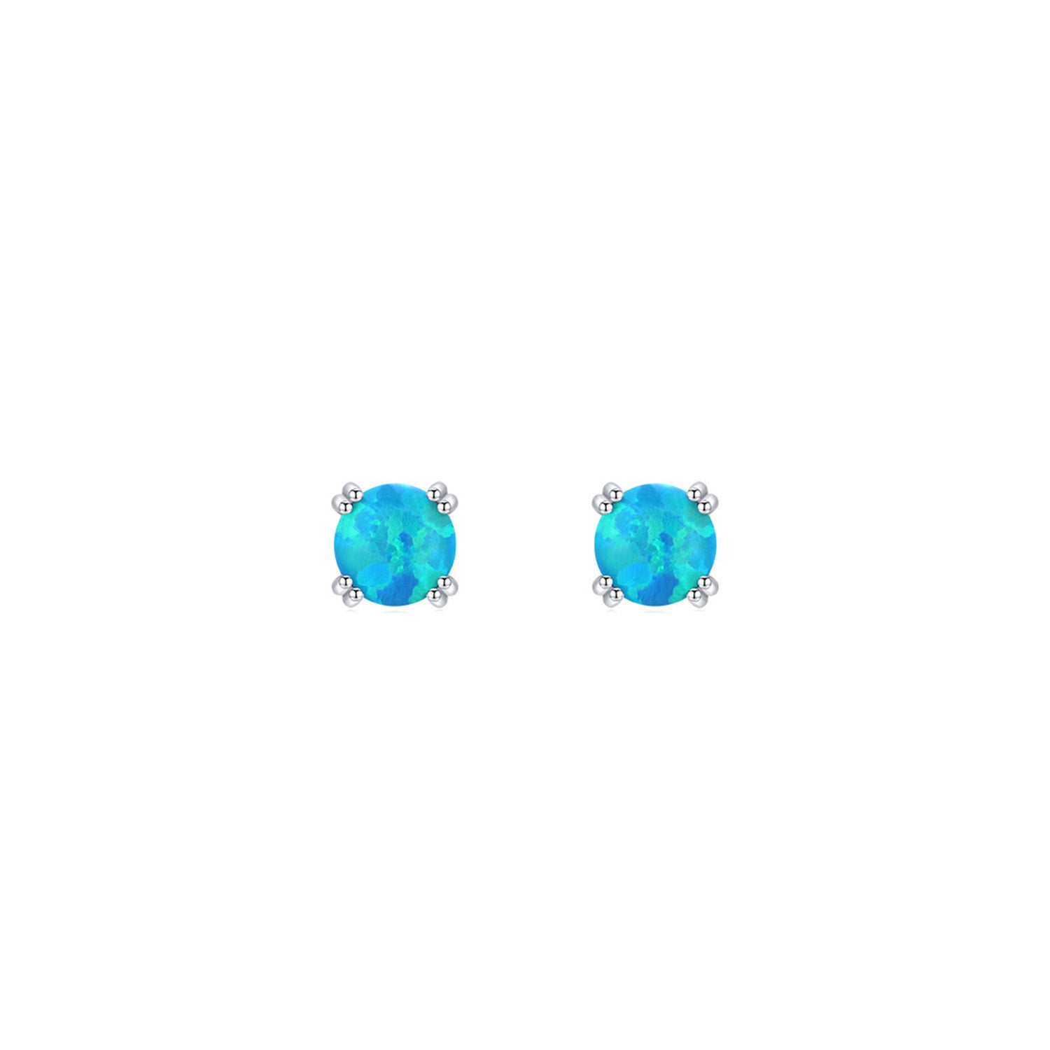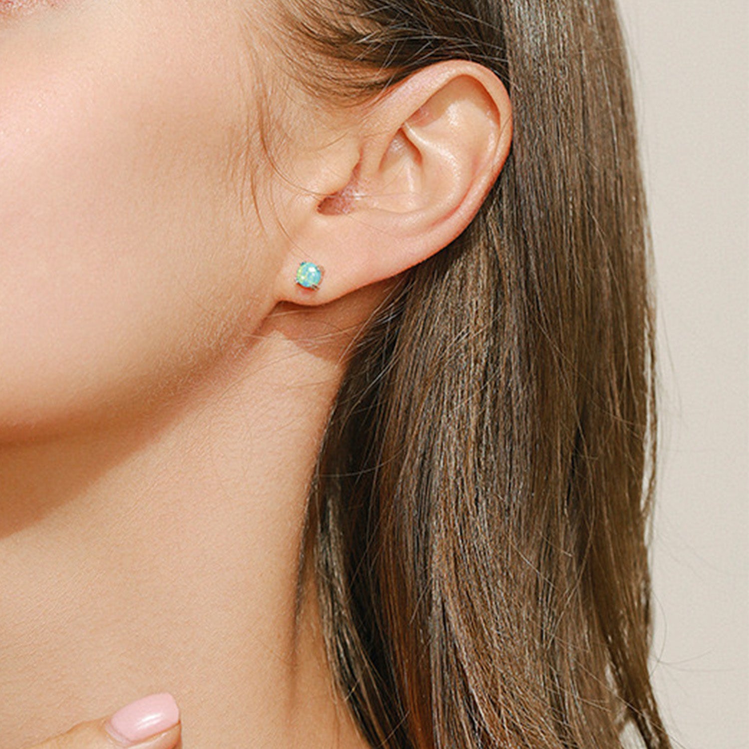 The Opal Light Studs ✦ Still Glow feature a single round opal held in a classic four-claw setting — minimalist yet radiant.